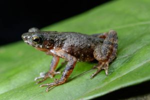 Ansonia platysoma is a locally common toad of mid-elevation hills up to montane forest. This species is known from Kinabalu, Crocker Range, Gunung Mulu and Brunei. The individual in the photo is only tentatively assigned to the species; as (we think) the taxonomy in Ansonia is not fully resolved yet.
