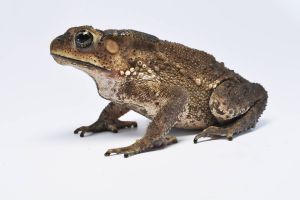 The species is stocky and easily recognized by its prominent black cranial crests and dark warts. The head is relatively high and heavily ossified. Large poison glands (parotoid glands) are present behind the eyes. The tympanum is distinct and clearly visible. The skin is rough and often rather dry, and is covered with warts and tubercles of varying size. The toes are webbed, and the digits do not terminate in adhesive pads.
