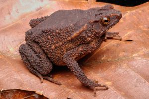 Ingerophrynus quadriporcatus lives in peat swamp areas in coastal lowlands. Tadpoles live in peaty, black water. The adults are slightly bigger and more corpulent than the congeneric I. divergens but less contrasty in coloration. I. quadriporcatus is named after the four bony ridges on top of its head.