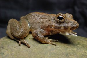 Females may reach 100 mm and males 130 mm in length. The thighs are strong and this frog is a good jumper.