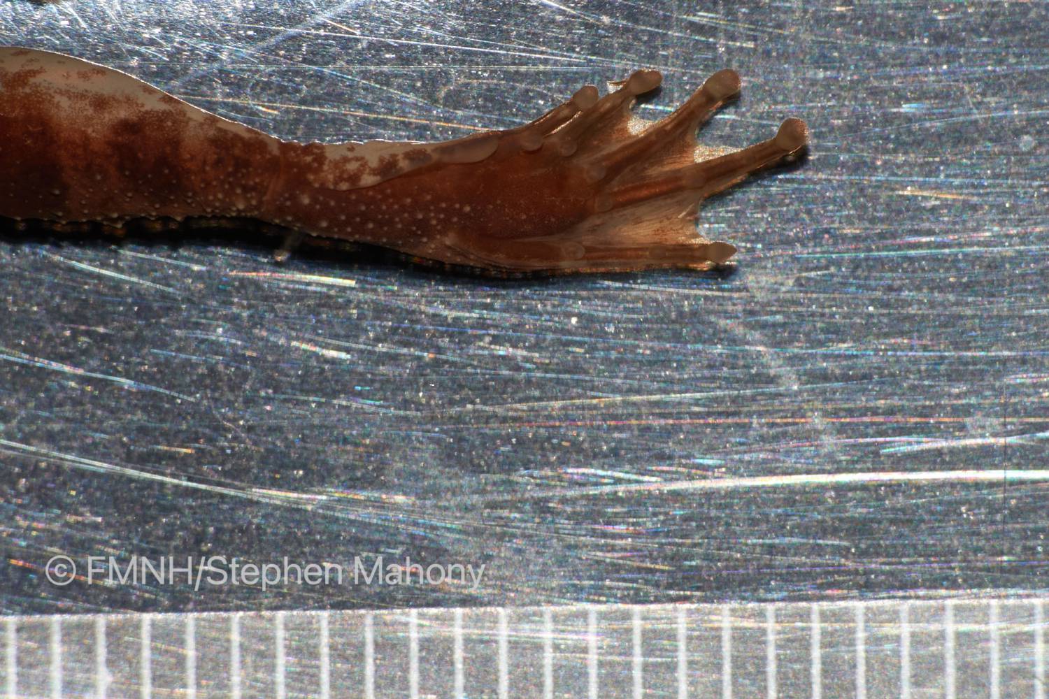 The natural history of this species is unknown. We thank the FMNH and Stephen Mahony for providing images of a paratype specimen.
