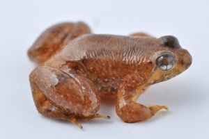 It is a small sized frog. Maximum size is approximately 17 mm in males and 20 mm in females. Dorsal coloration is variable, brown to orange brown with dark markings. The eyes are relatively large and the snout is short.