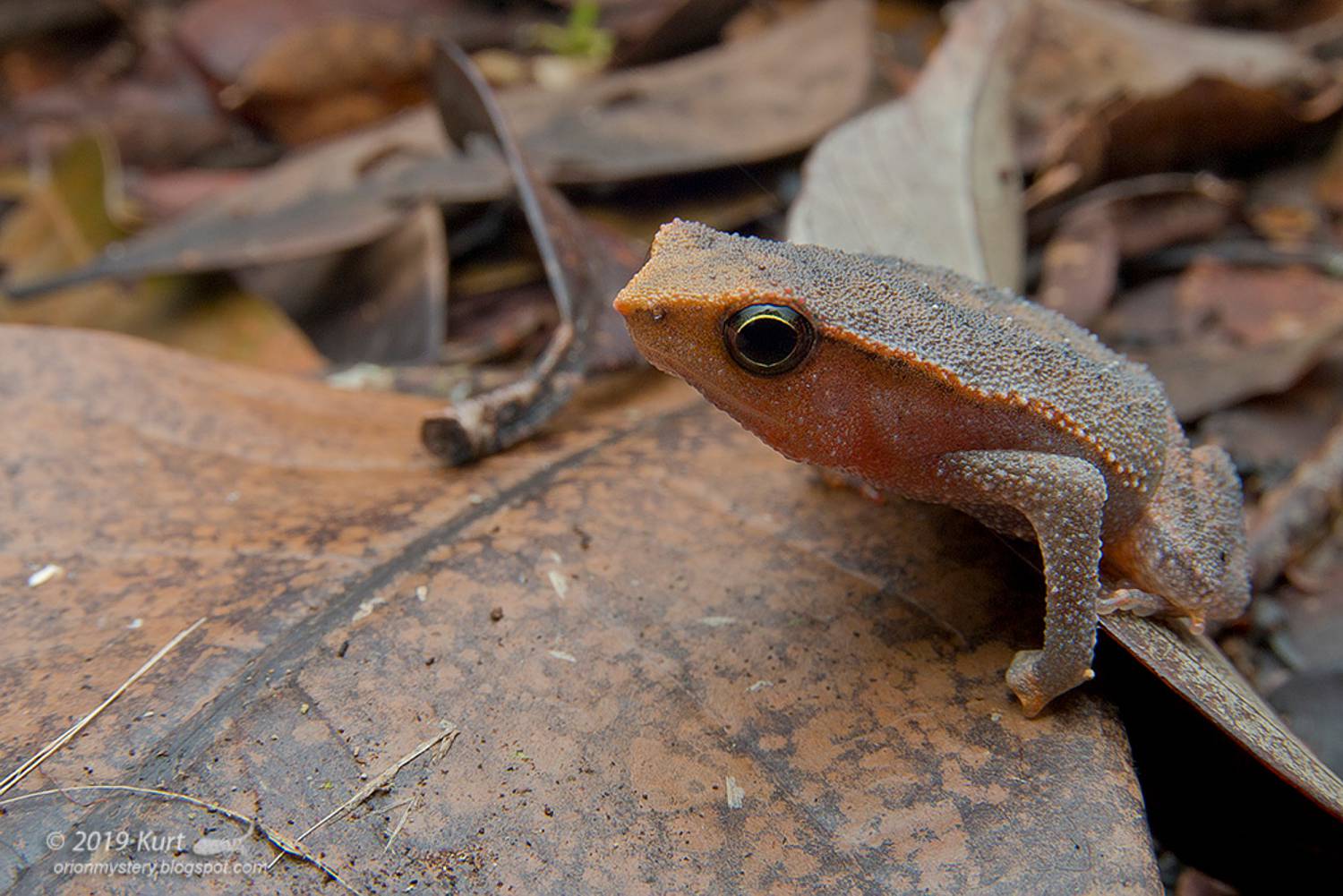 The species was originally described by Inger (1966) from Nanga Tekalit, Mengiong River, Third Division, Sarawak. Specimens shown on this page were collected from Tawau Hills (Sabah) and Batang Ai (Sarawak). Kalophrynus intermedius is a ground-dwelling, stocky frog found in lowland rainforest. Females reach up to 40 mm in snout–vent length (SVL), while males remain smaller.