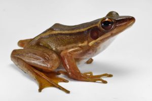 The toe and finger tips are slightly expanded. The eardrum is often (but not always) reddish-brown, sometimes with or without a green central spot. The underside lacks darker markings. The throat, chest, and belly are white to cream, whereas the limbs tend to have a fleshy or orange tint.
