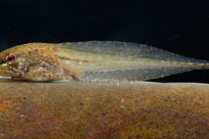 H. erythraea is agile, somewhat shy, and an adept jumper. Inger and Stuebing (2005) described the call as a "squeaky warble." The tadpoles of this species live in stagnant, usually sun-exposed waters with abundant aquatic plants, typically in ponds within agricultural land. Tadpoles grow to sizes of 40–50 mm. Their coloration is distinctive and should not be confused with that of any other tadpole. Notably, they have a partially red iris and marbling on the dorsal side and flanks. The tail tapers to a flagellum, often with a light lateral stripe. Tadpoles tend to become darker as they approach metamorphosis.