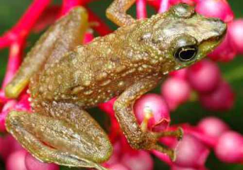 A small group of ranid frogs living in close association with streams. The distribution ranges from Borneo to the Philippines (ASW). The species in the genus are famous for their foot-flagging behavior (see image under S. parvus).