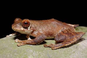Leptomantis malkmusi is a medium-size tree frog of hilly to montane rainforest. It has been reported from Sabah, particularly Gunung Kinabalu at 750–1000 m elevation. Snout-vent length is 27–36 mm, females are larger than males.