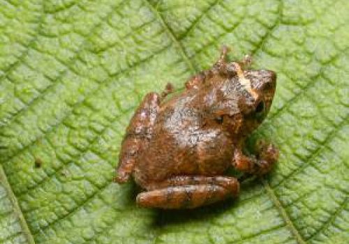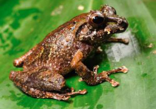 Bush Frogs are a diverse group of mostly small frogs. Although positively proven only for few species, it is assumed that most species have direct development (no free swimming larva) and are independent from bodies water for reproduction. This group of frogs has been subject to various taxonomic changes recently and stability has not reached. Currently there are more than three dozen species under the genus.