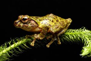 Philautus bunitus differs from most other Bornean Philautus species by its distinctive green coloration with dark markings and its large (relative to other Philautus) body size. Adult males reach about 40 mm in snout–vent length (SVL), and females up to 46 mm. Inger et al. (1995) derived the species name bunitus from the Greek bounites, meaning “dweller in the hills.” This species inhabits primary montane and submontane forests between 900 and 1600 m a.s.l. in western Sabah and eastern Sarawak. It could possibly occur in some mountain regions of northern Kalimantan. It is especially abundant around Gunung Kinabalu, which makes it remarkable that it was only described in 1995 by Inger, Stuebing, and Tan.