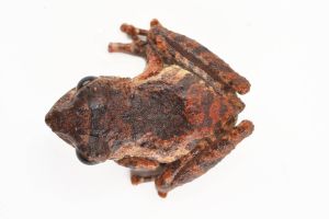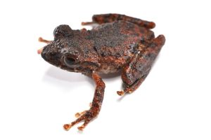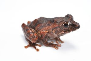Males reach approximately 21 mm in snout–vent length; data for females are not yet available. The body is stocky, and the snout is slightly pointed both in dorsal view and in profile. A distinct canthus rostralis runs between the eye and nostril, curving gently behind the nostril. The nostrils are positioned on small raised prominences. The pupil is horizontal and elliptical, and the eardrum (tympanum) is visible but somewhat indistinct.