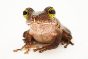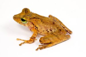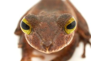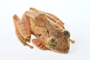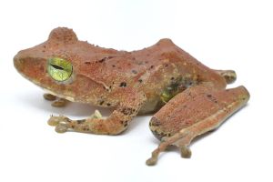 The iris is yellow-gold to greenish. Dorsal coloration ranges from light to dark brown, sometimes reddish brown, with a dark X-shaped marking between the shoulders and small round black dots along the flanks in most specimens. The limbs often bear faint crossbars.