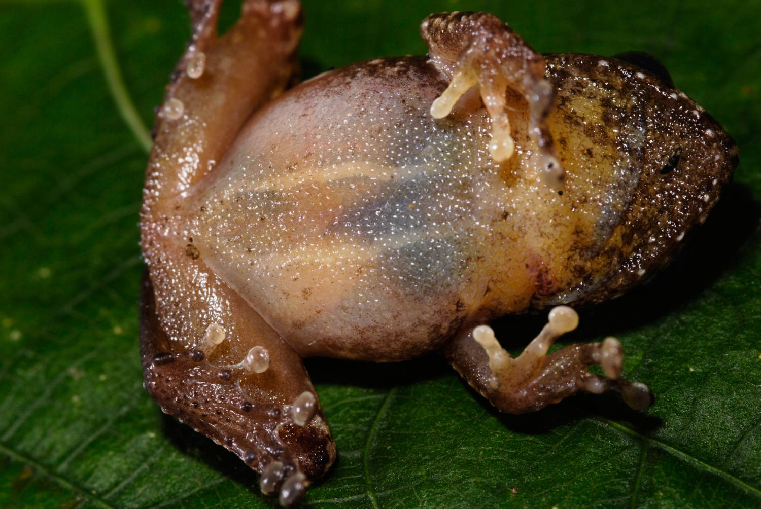 All digits terminate in rounded adhesive pads, and the toes are half-webbed. The limbs are moderately long.