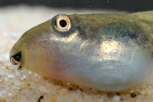 Reproduction occurs via eggs laid in foam nests, usually laid on the surface of water bodies and attached to vegetation or twigs. Tadpoles are grey-green to brown on the dorsal side. A light spot on the snout is a common feature. The eyes are positioned far lateral. A horizontal pigment stripe is located at the tail base, bordered above by a pigment-free stripe. The ventral side is silvery-white, including the spiracle and cheeks, which almost reach the eye. Tadpoles grow to a total length of 40–50 mm. Their tail fin is narrowly pointed, resembling a flagellum. We have consistently found these tadpoles in stagnant water, primarily in puddles—often ephemeral—with silty bottoms and at least partial sunlight exposure.