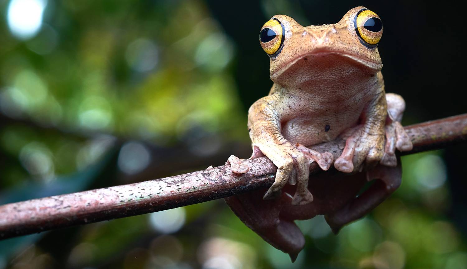 Individuals of this species are not frequently encountered, likely because they spend most of their time high in the forest canopy. When found, they typically occur in low numbers. Inger et al. (2017) described the call as a deep rattle resembling a woodpecker pecking on a hollow tree.