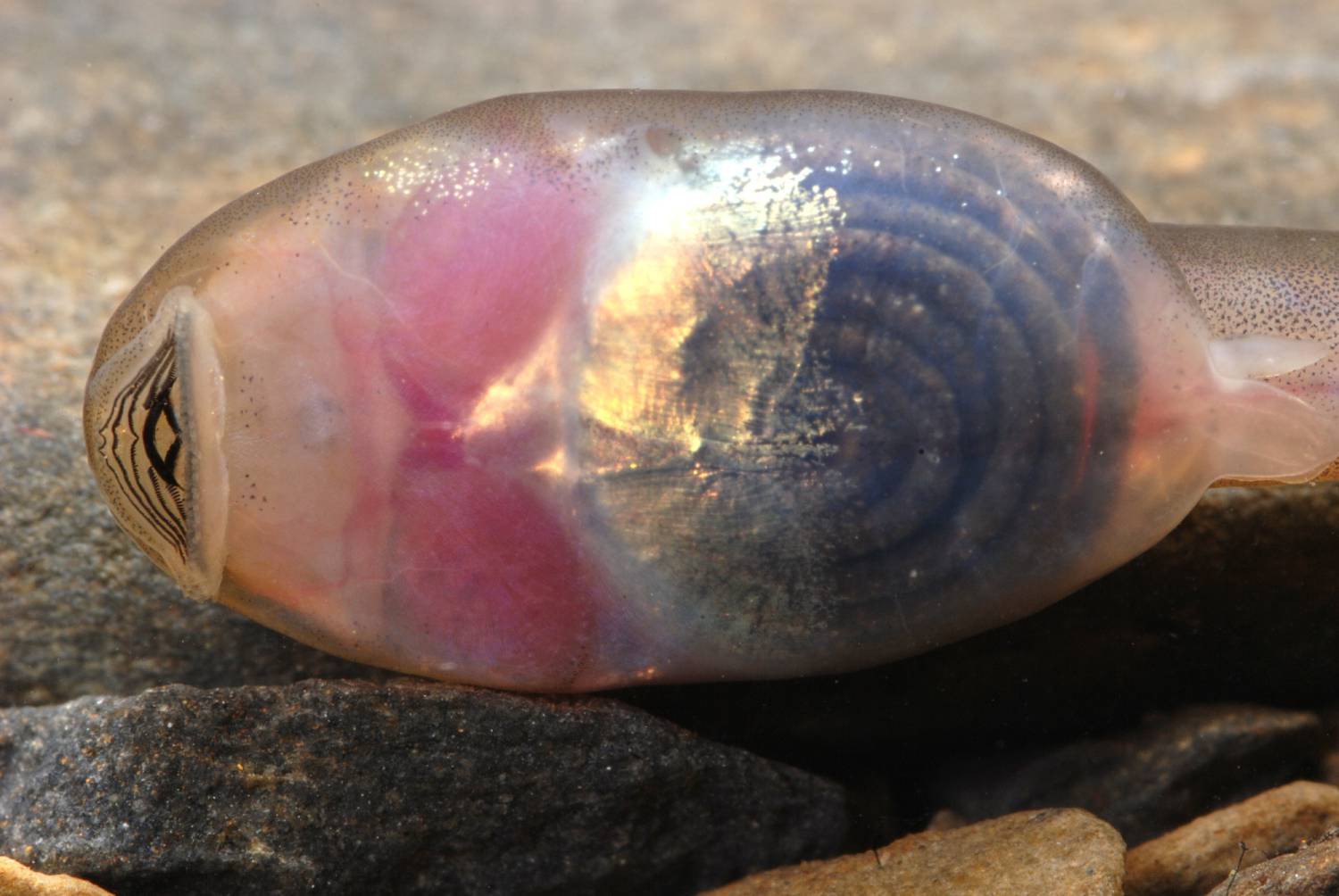 We have found tadpoles of R. pardalis in a variety of lowland forest habitats. The species uses standing water such as ponds, intermittent stream sections, or isolated stream-side pools. The size of breeding sites ranges widely, from small pig wallows only a few square meters in area to large ponds covering several hundred square meters. Tadpoles forage mainly along the bottom and grow to more than 48 mm total length. The tail is pointed. Tadpoles of some populations exhibit strikingly contrasted coloration, often with a pale patch and dark marking below the eye and dark pigment between the eyes (similar to H. raniceps but lacking glandular patches). Other populations show only pale markings on the cheeks.
