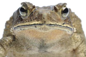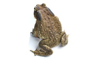 The species is stocky and easily recognized by its prominent black cranial crests and dark warts. The head is relatively high and heavily ossified. Large poison glands (parotoid glands) are present behind the eyes. The tympanum is distinct and clearly visible. The skin is rough and often rather dry, and is covered with warts and tubercles of varying size. The toes are webbed, and the digits do not terminate in adhesive pads.