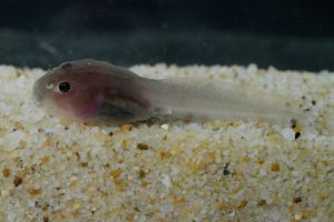 The tadpoles of I. quadriporcatus are quite typical bufonid tadpoles: small in body size (<25 mm total length) and rhomboidal body shape when looked at from above.