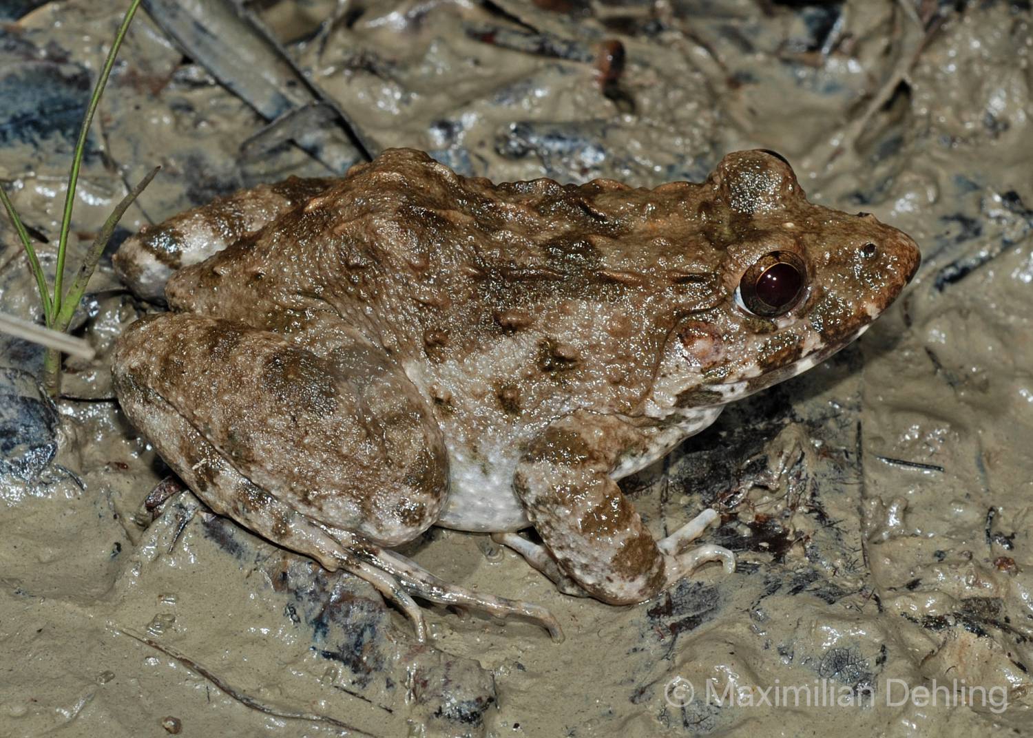 Fejervarya cancrivora, the Crab-eating Frog, inhabits coastal habitats such as shore-line, disturbed habitats and mangrove, but can also be found several km away from the coast.