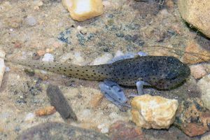 The tadpoles of Leptobrachium hendricksoni have been described long time ago but images are rare. Thanks to the courtesy of ©Nick Baker (Ecology Asia) we can present photos here as well as an adult from Peninsular Malaysia (courtesy ©Roy Kittrell) . As other species in the genus, the tadpoles of L. hendricksoni are large and heavily built. What sets them apart, however, from the tadpoles of for example L. abbotti is the unique pattern with black dots in L. hendricksoni. L. hendricksoni tadoples live in quiet sections of lowland streams.
