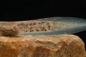 Reliable keys to determine tadpoles in the field have not been established yet. The tadpole depicted below was assigned to the species on the basis of DNA matching with an adult frog.