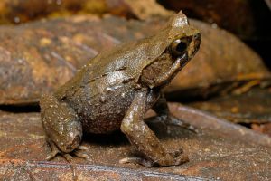 Pelobatrachus baluensis reaches a maximum size of 70 mm in females and 45 mm in males. It is known from Mt. Kinabalu, Crocker Range and neighboring mountains of Sarawak and Kalimantan. It is a montane species that occurs in primary forest between 1200–1900 m asl.