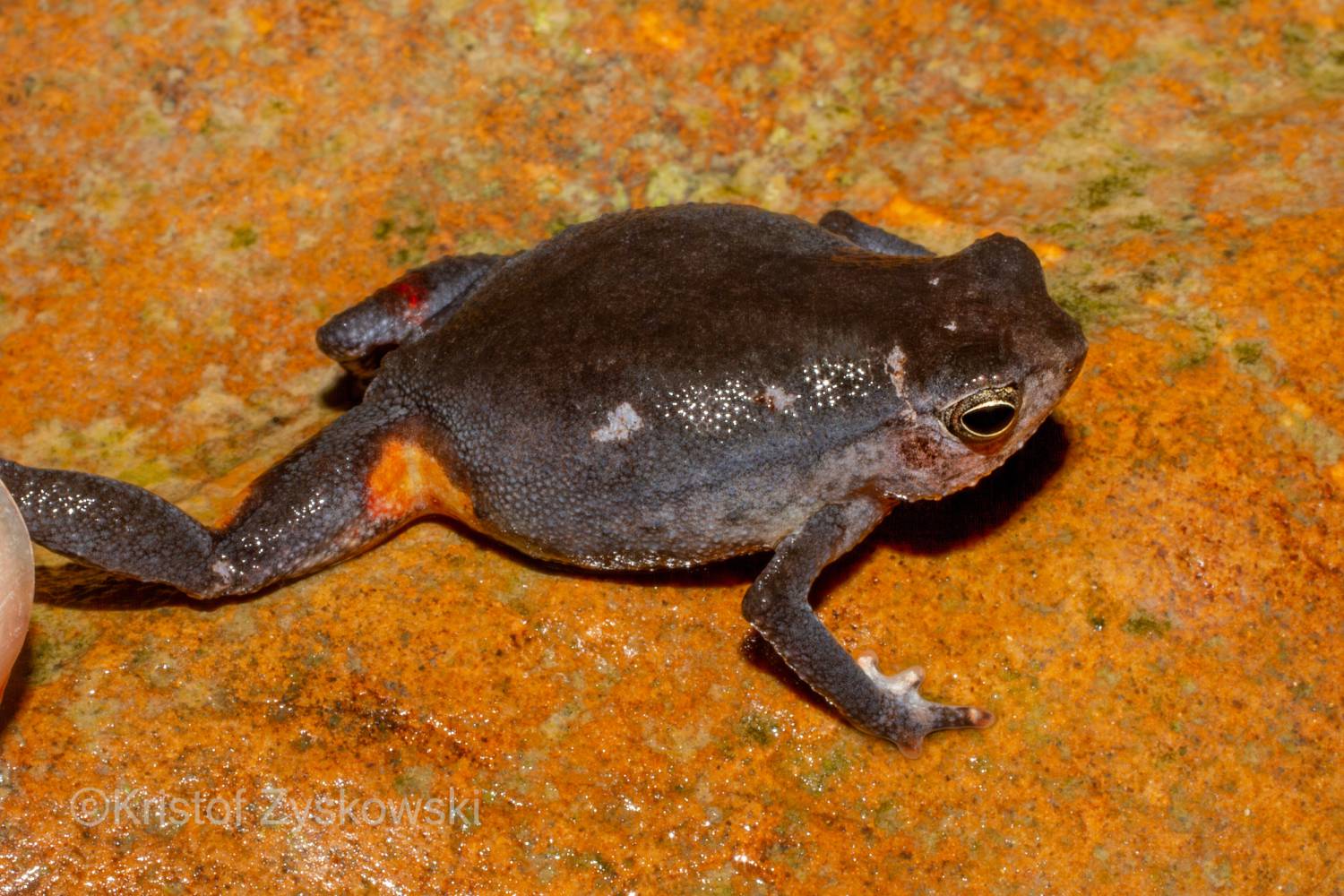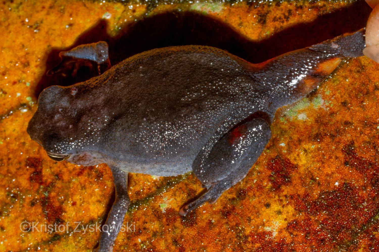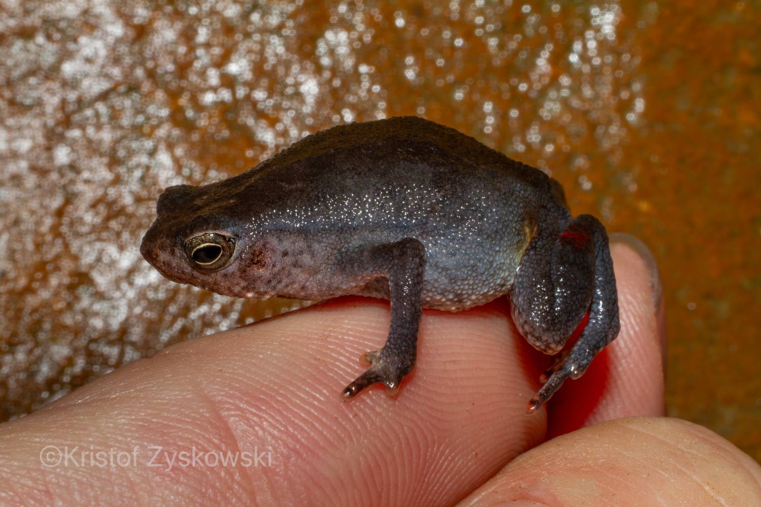 Although this species of sticky frog likely does not burrow itself, it has been found sitting at the entrances of burrows, which inspired its name (Inger 1966). Kalophrynus subterrestris is reportedly found in lowland primary and good secondary forests of Brunei, Sabah, Sarawak, and north-central Kalimantan; however, modern evidence from these regions—including DNA data and well-documented photographs of living specimens—are currently lacking. We present here photos of a specimen from Brunei contributed by ©Kristof Zyskowski that we tentatively assing to this species. Currently, in our opinon, this specimen fits the original description and photograph in Inger (1966) better than other specimens that have been publicised under the name.