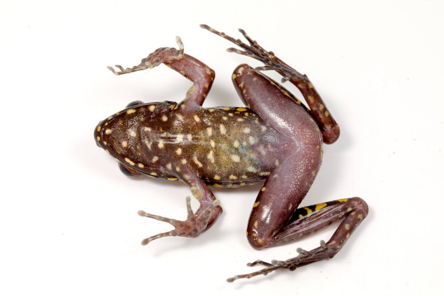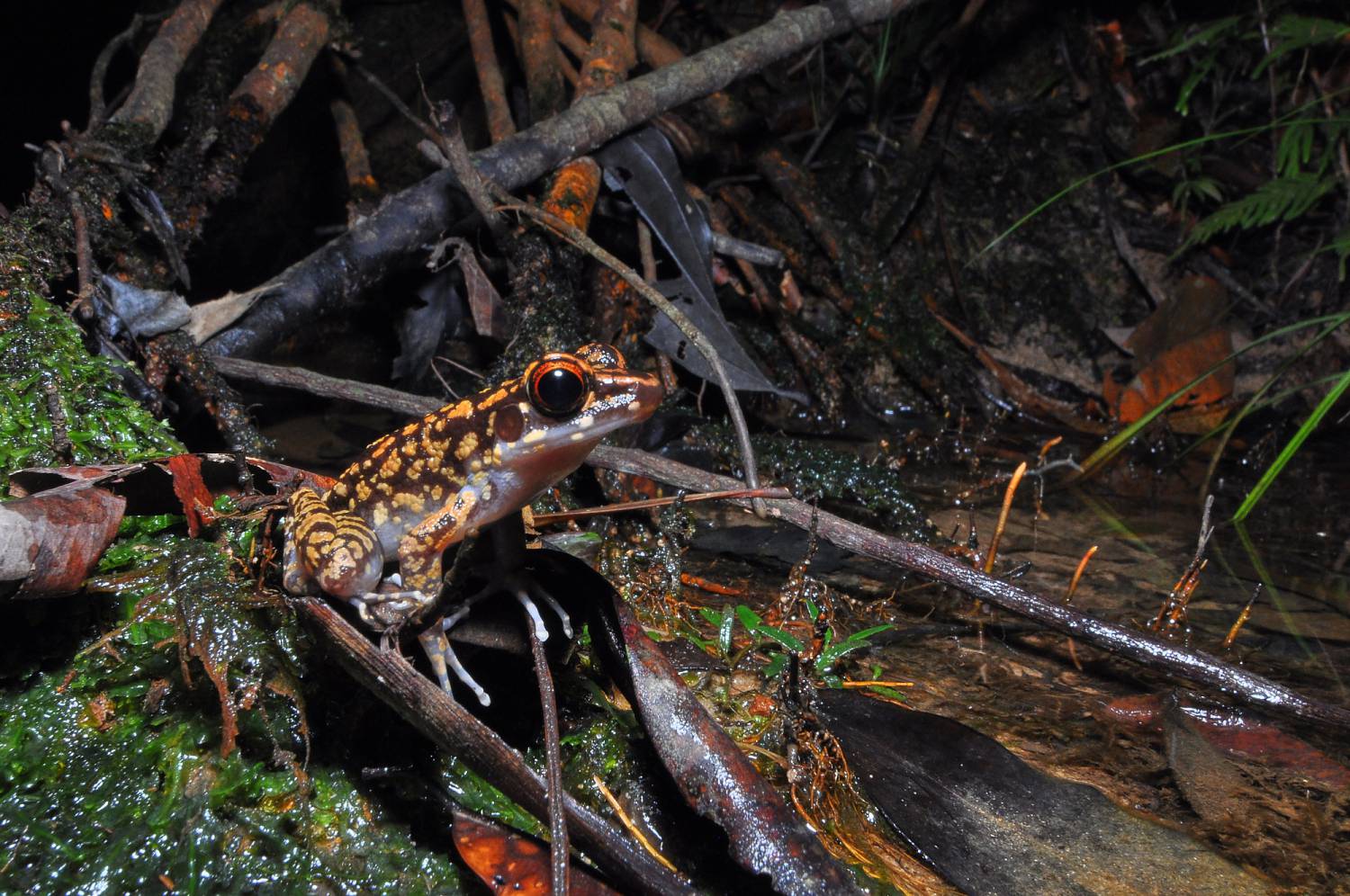Hylarana picturata is typically associated with small lowland streams. Males usually reach a snout–vent length of around 40 mm, while females can grow to almost 70 mm. This species prefers rocky streams (in contrast, we observed H. signata more often at streams with slow current and soft sediment).