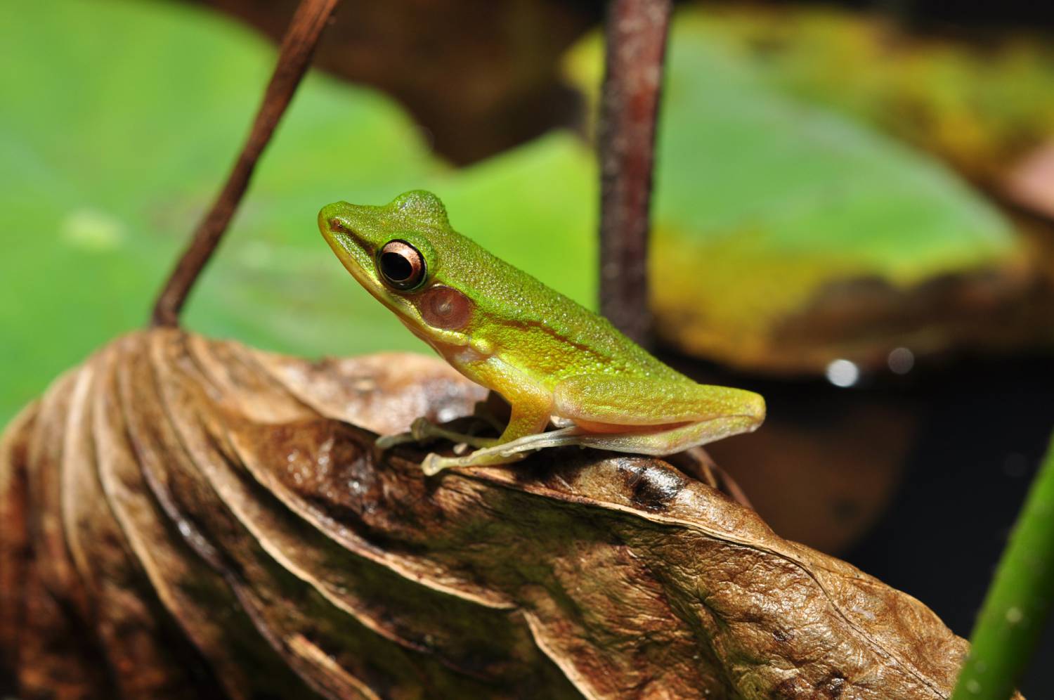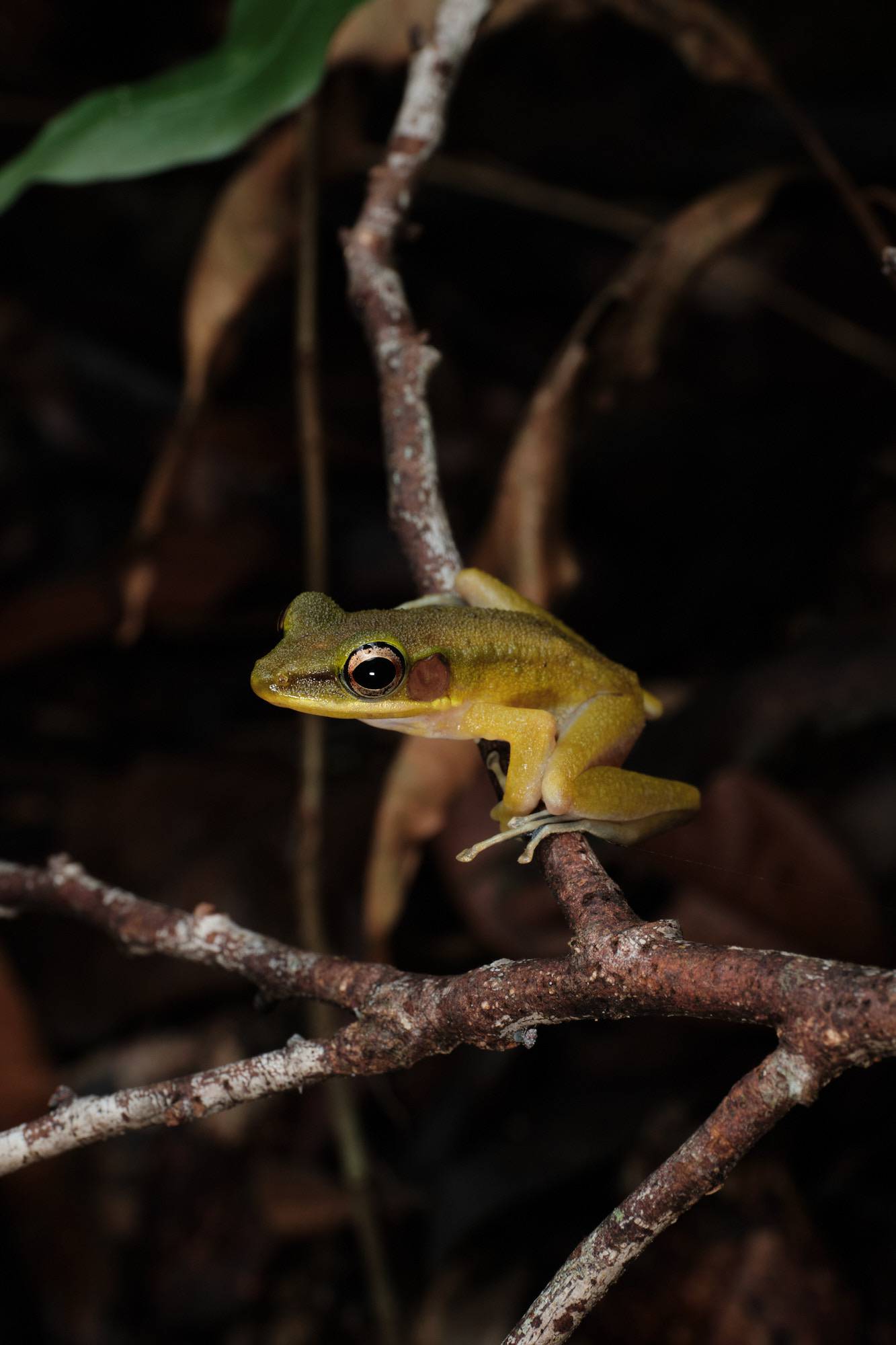 Hylarana (Chalcorana) raniceps is a medium-sized frog, with males reaching approximately 34 mm and females up to 42 mm in snout–vent length. This species occupies a broad range of lowland habitats, including primary rainforest and well-preserved secondary forests. It is very similar in appearance to Hylarana (Chalcorana) megalonesa, but is significantly smaller in both sexes.