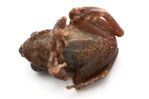 The fingers and toes bear expanded terminal adhesive disks. The free portions of the digits are fringed with fleshy ridges. Webbing is very reduced between the fingers and only moderately developed between the toes. The dorsal skin bears scattered small, round tubercles, with some larger tubercles arranged in a line from behind the eye to the mid-body. Additional tubercles are present on the flanks and eyelids. A distinct supratympanic fold extends from the eye to the arm. The ventral skin is coarsely granular.