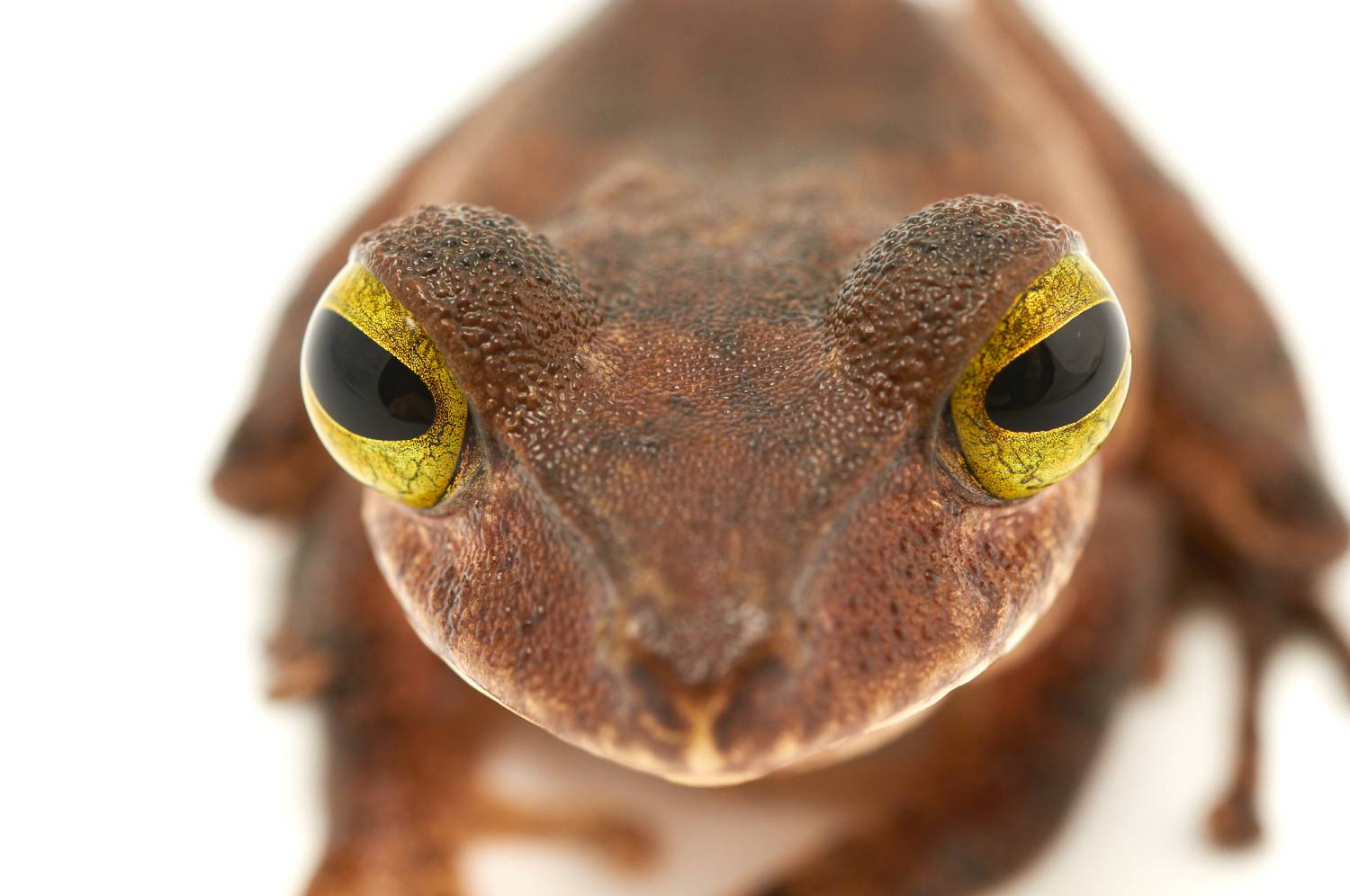 The iris is yellow-gold to greenish. Dorsal coloration ranges from light to dark brown, sometimes reddish brown, with a dark X-shaped marking between the shoulders and small round black dots along the flanks in most specimens. The limbs often bear faint crossbars.