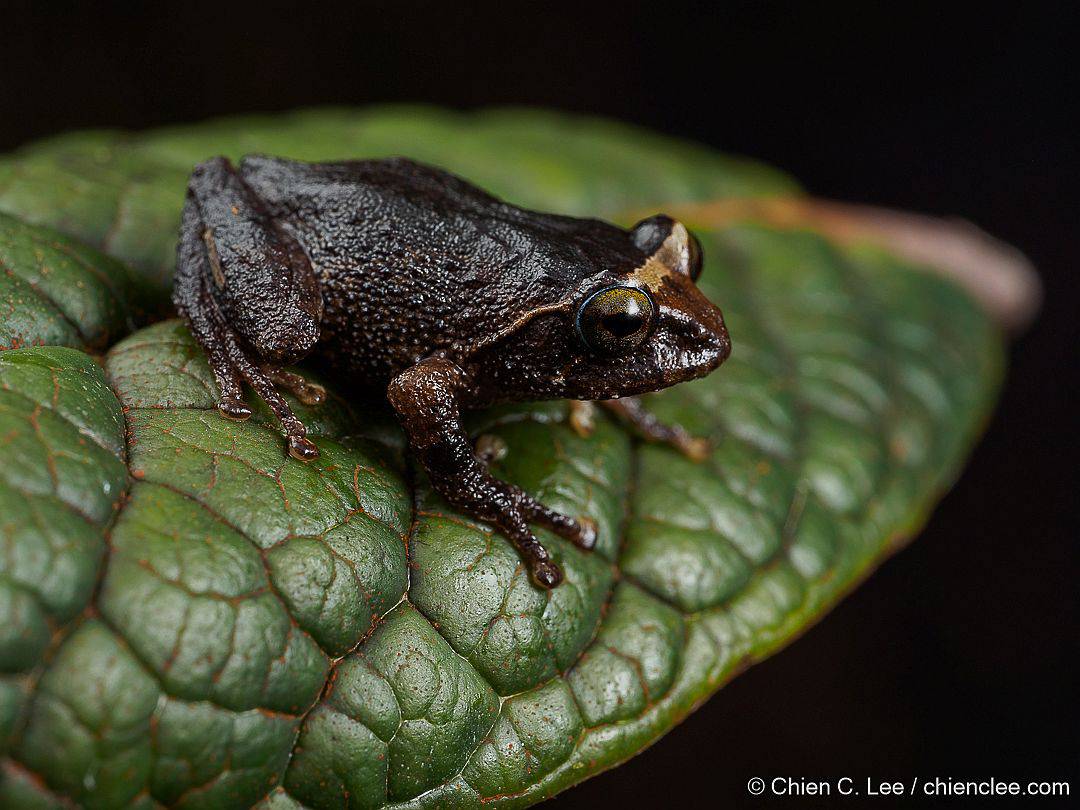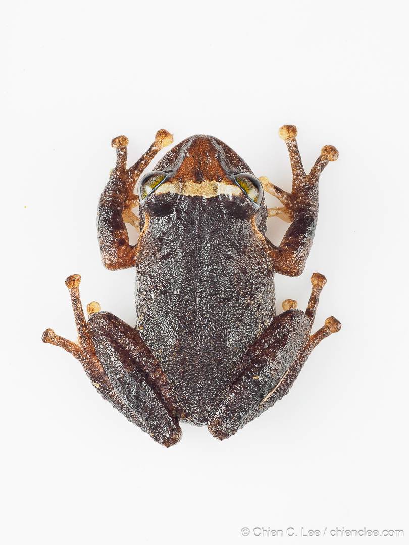 The coloration of the type specimen was blackish brown dorsally, densely stippled with whitish dots. A yellowish-white crossbar between the eyes separated the reddish-brown snout from the blackish-brown dorsum. A white blotch was present below the eye. The ventral surface was white with brown reticulation. The central part of the iris was greyish brown with darker reticulations and yellow-green margins. Little is known about the variability of this species, but highly variable color patterns can be expected.