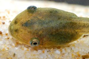 Reproduction occurs via eggs laid in foam nests, usually laid on the surface of water bodies and attached to vegetation or twigs. Tadpoles are grey-green to brown on the dorsal side. A light spot on the snout is a common feature. The eyes are positioned far lateral. A horizontal pigment stripe is located at the tail base, bordered above by a pigment-free stripe. The ventral side is silvery-white, including the spiracle and cheeks, which almost reach the eye. Tadpoles grow to a total length of 40–50 mm. Their tail fin is narrowly pointed, resembling a flagellum. We have consistently found these tadpoles in stagnant water, primarily in puddles—often ephemeral—with silty bottoms and at least partial sunlight exposure.