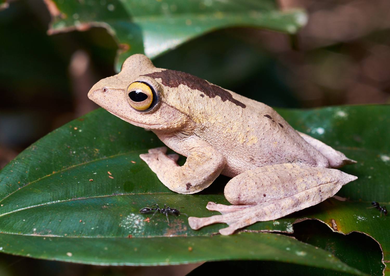 Individuals of this species are not frequently encountered, likely because they spend most of their time high in the forest canopy. When found, they typically occur in low numbers. Inger et al. (2017) described the call as a deep rattle resembling a woodpecker pecking on a hollow tree.